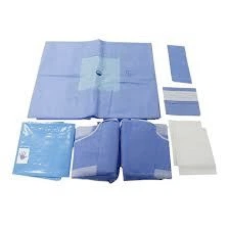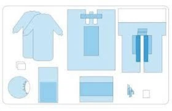 ① Cardiovascular drape: Used to cover or stick at the art of patient body during surgery to prevent contact with unprepared surfaces and to maintain the sterility of environmental surfaces, equipment and the patient’s surroundings.