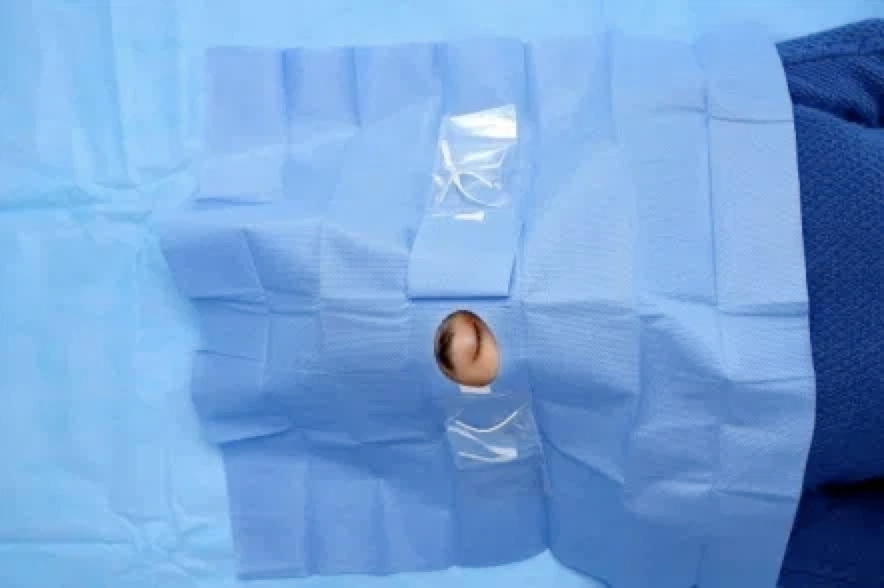 Ophthalmic drape is used in the operation of ophthalmic surgery. The product is non-irritating, non-toxic, odorless and has no side effects on the human body and reduce the risk of cross-infection.